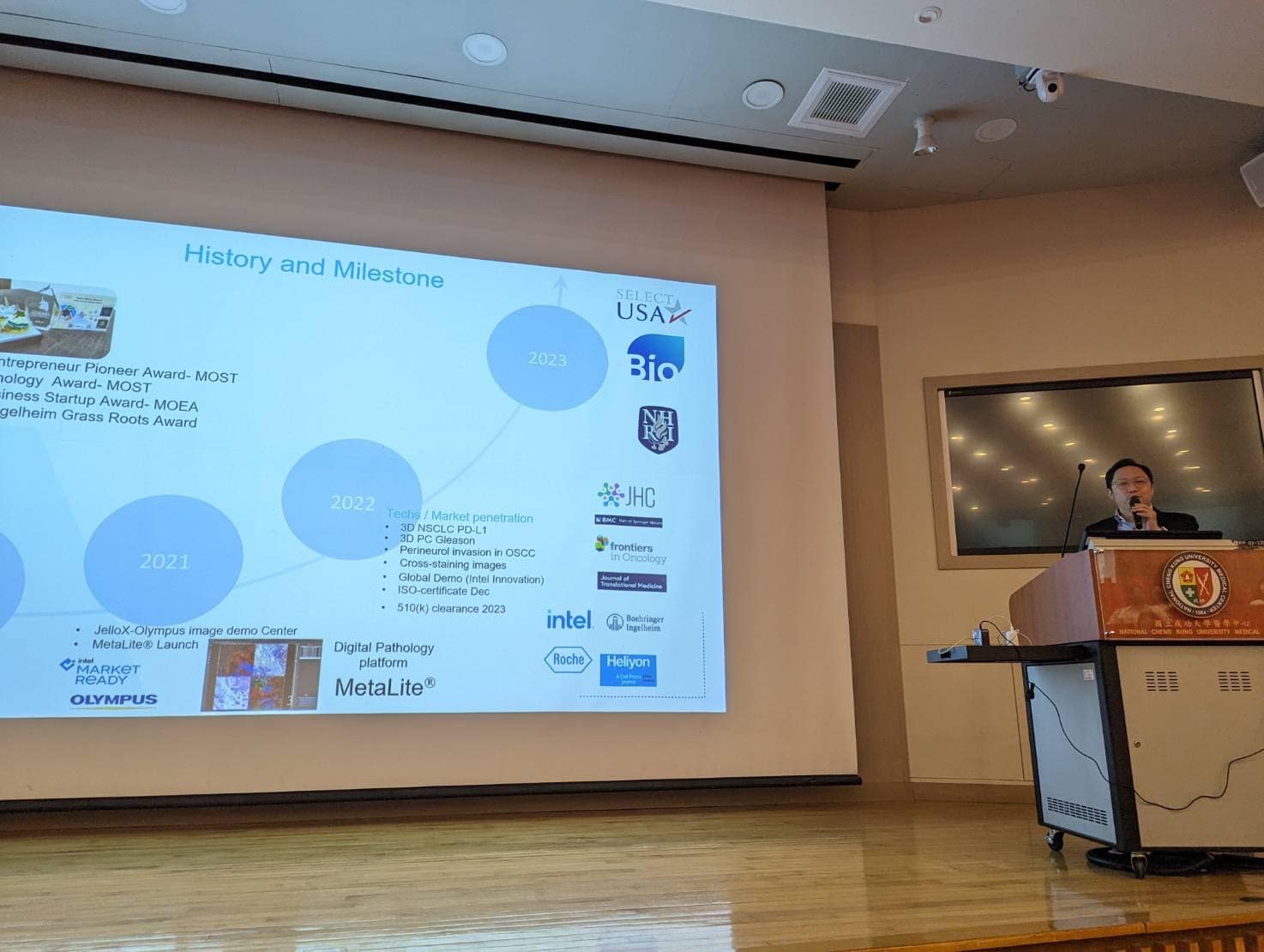 5月8日,捷絡生技行銷處副處長林奇佑博士、元利儀器科學應用部洪金俊博士、產品專員易德明前往成大醫學院分享影像處理軟體與人工智慧對顯微影像分析的應用。此講座也是成大醫院40周年慶祝活動之一,吸引超過百位醫療專業人員與醫學院學生入座。