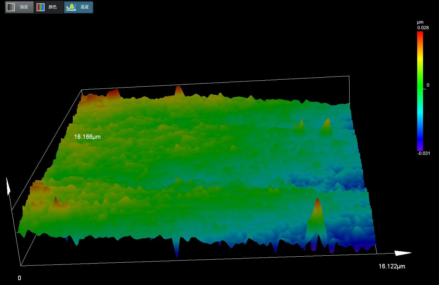 圖說:拍攝的表面三維成像,可用高度資訊圖的方式呈現,使用者更能對表面結構一目了然。