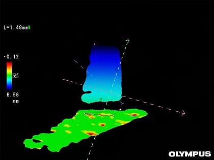 立體測量結果的質量取決於適當的量測距離,而Olympus IPLEX NX可以在檢測人員開始測量之前提供3D的實時距離。然而,Olympus IPLEX NX這個被稱為多點測距的功能,可以更快地獲得更可靠的測量結果。
