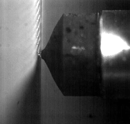 由探針頂上來的晶粒必須直上直下,否則易發生歪斜的狀況,在高速攝影機中可以幫助檢查探針的位置,在操作上只要設定框率、快門速度後即可完成錄製,接著便可使用任意速度觀看。