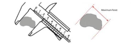 粒徑的測量:根據不同參數對所探測到的顆粒進行測量,這些參數包括:最大卡尺直徑(與顆粒投影相切的兩條平行線之間的距離)和等效圓直徑。