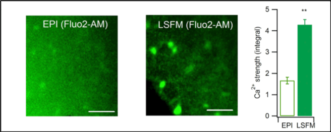 這也代表明星形膠質細胞在大腦發育和功能調節的重要性,過去科學家認為星形膠質細胞僅影響神經組織(Grienberger Konnerth,2015年)。這個例子正好可以說明,使用LSFM可快速觀察厚組織中細胞的活性指標,以及拍攝3D立體影像(Hillman等人,2019年)。